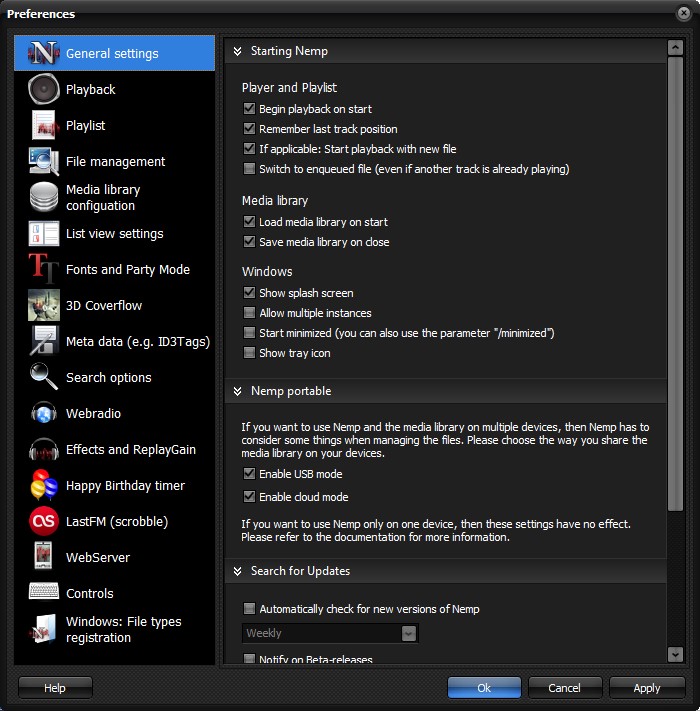 Das Verhalten von Nemp kann in vielen Dingen angepasst werden. Im Laufe der Zeit kamen immer wieder Anfragen rein, ob man nicht dieses oder jenes machen könnte. Vieles davon wurde dann eingebaut und hat nach und nach die Fülle der Einstellungsmöglichkeiten erhöht.