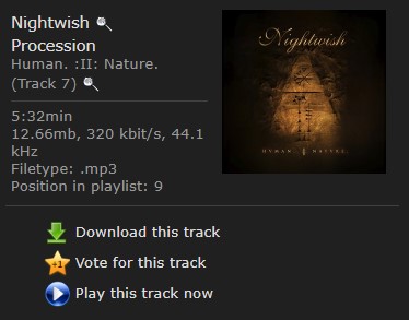 Je nach eingestellten Zugriffsrechten kann für den Titel gestimmt werden, er kann sofort abgespielt werden, oder aber die Datei kann auf das jeweilige Gerät heruntergeladen werden.