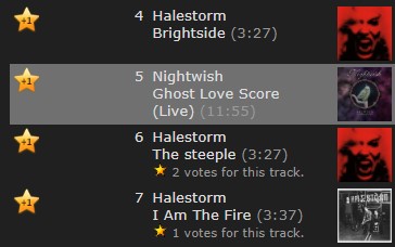 Ein Klick auf das Sternchen mit "+1" fügt dem Stück eine Stimme hinzu und sortiert die Playlist so um, dass die Lieder mit den meisten Stimmen als nächstes abgespielt werden. In der Playlist selbst werden die Anzahl der vorhandenen Stimmen ebenfalls angezeigt. Mehrfaches Abstimmen für einen Titel ist möglich, aber nicht schnell hintereinander.