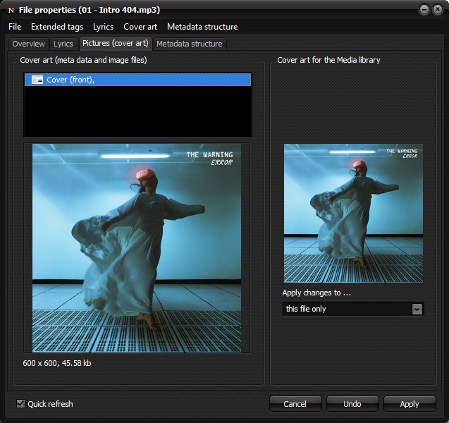 Therefore there is the option "Use current selection" and "Load cover image" to override the automatic selection of Nemp. If you click on "Apply", an ID is calculated from the selected image, which is written into the metadata of the file. Optionally, this can be applied directly to all other files in this folder, or to all files for which Nemp has determined the current wrong cover.